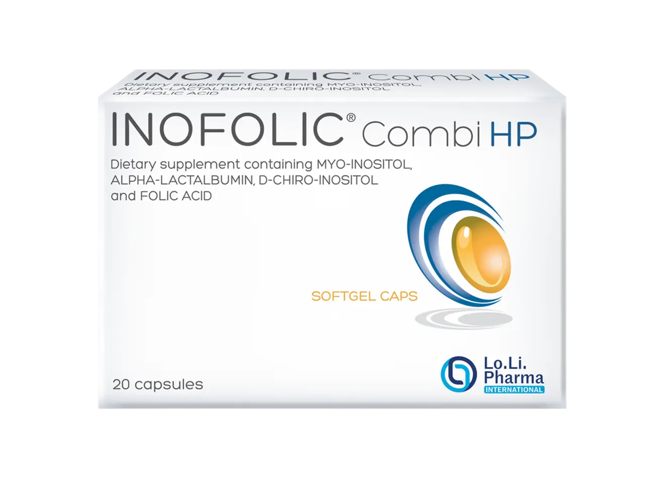 INOFOLIC® Combi HP is a dietary supplement containing Myo-inositol, alpha-lactalbumin, D-chiro-inositol and folic acid useful for giving the necessary quota of these substances in cases of reduced dietary intake or increased bodily requirement.