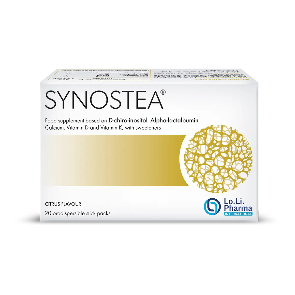 SYNOSTEA ® is a dietary supplement containing D-chiro-inositol, Alpha-lactalbumin, Calcium, Vitamin D and Vitamin K providing an additional quota of nutrients in case of reduced dietary intake or increased physiological requirement.