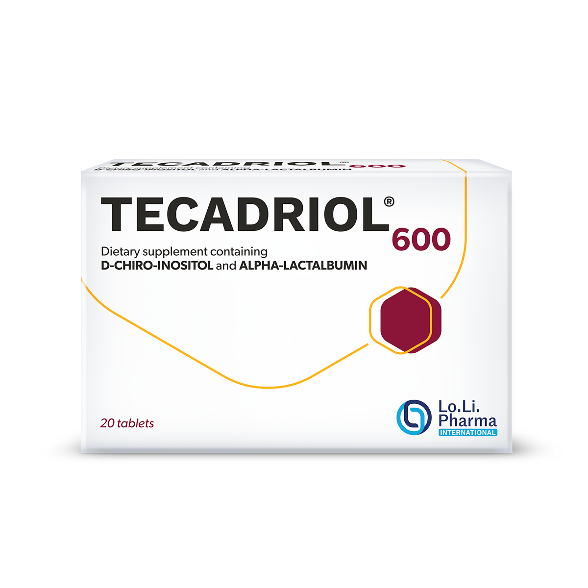 TECADRIOL® 600 is a dietary supplement containing D-chiro-inositol and alpha-lactalbumin providing an additional quota of nutrients in case of a reduced contribution with diet or with an increased physiological requirement.